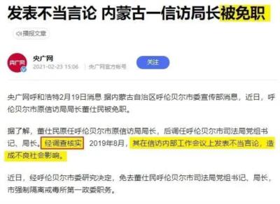 后续,因为不当言论、因为不良社会影响,因为信访局长不是“编外人员”,所以,最终董仕民局长得到的“处罚”,是被免职。