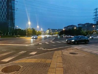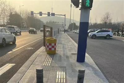 ▲笔者家门口的盲道,一侧通向了斑马线,一侧则笔直地通向了没有斑马线的机动车道,而另外一侧的右转人行道却并没有铺设盲道