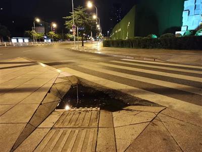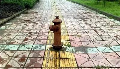 ▲干爽的路面上,只有盲道通向了小水坑 | 还是我家门口……
