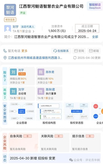 3. “评论员毕舸”微信公众号. 成立仅6天的企业承包江西第三大水库 我翻了翻它的底牌. 2025年5月7日