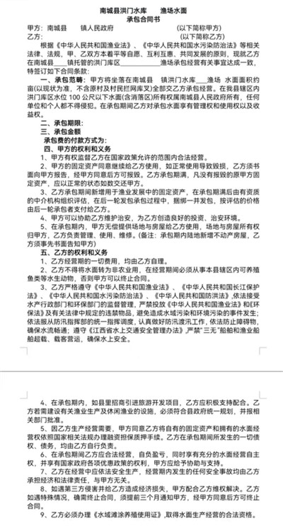 6.南城县境内洪门水库水面20年期承包经营权拍卖公告. 江西省博达拍卖有限公司拍卖资料--8、南城县洪门水库水面承包合同(样本). 2025年4月22日