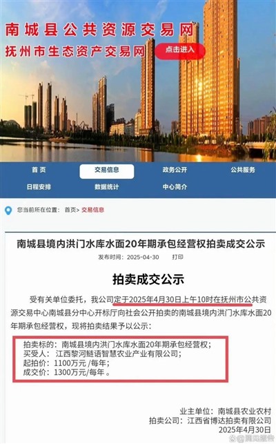 随后,记者致电南城县农业农村局,一名工作人员证实,确为该公司中标,“我们请了第三方拍卖公司组织竞拍,拍卖工作是依法进行的。”