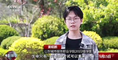 山东城市服务职业学院2022级学生姜昭鹏在接受记者采访时说: