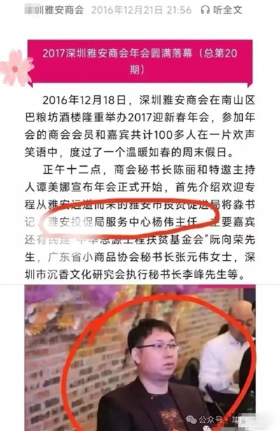 和杨某一同去参加深圳商会年会的还有雅安投资促进局的将淼书记。