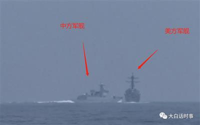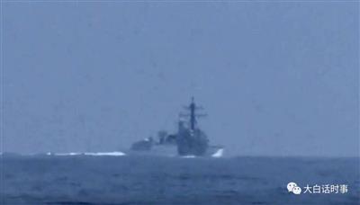 需要说明的是,有人看视频,因为视觉缺少参照物,会感觉美军舰是朝着画面开,变成我们是从美军舰后方驶过。