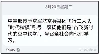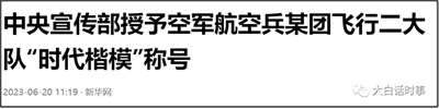 6月20日,我们全网宣传,空军航空兵某团飞行二大队获得“时代楷模”称号。