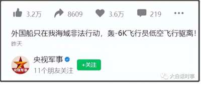 比如,这个标题就直接写《外国船只在我海域非法行动,轰-6K飞行员低空飞行驱离》