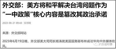 这个我觉得应该是跟布林肯在跟我们见面时候说的话,是有出入的。所以,我们才会指责“美方篡改其政治承诺”。