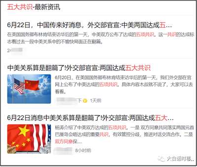 不过我注意到,网络上一搜这个“五大共识”,马上就出来一堆这种“中美关系翻篇了”的文章。
