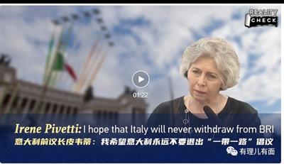 近期来华的意大利国家众议院前议长皮韦蒂就在北京的一次演讲中直言,“作为一名意大利公民,我希望意大利永远不要退出‘一带一路’倡议。”