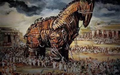 今天举凡使用电脑手机的人都知道"木马病毒",也知道“木马病毒”的为害,它源于公元前十二世纪初一场史称"特洛伊战争",荷马史诗《伊里亚特》叙述了此次战争,这个故事今天在我国几乎家喻户晓。据传说这场延续十年之久的战争,久攻不下的特洛伊城最后由希腊人用"木马计"攻破。因此,"特洛伊木马"现在已成了"挖心战"的同义语,比喻打进敌人心脏的战术。