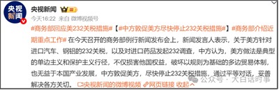 今天还有一个新闻,中方敦促美方,尽快停止232关税措施。