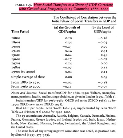Peter Lindert的多国数据研究发现,一个国家在1880-2000间的社会转移支付(退休金,失业救济金,医保和住房保障等补贴措施)和该国的经济增长之间没有大的负相关性,越是发达国家,社会福利就越发达。这说明“福利国家”是潜在的“免费午餐”,即高达GDP的25%至35%的社会转移支付并没有降低经济增长率,反而促进了经济增长。与这一趋势相反,前面引用过的中国人民银行调查统计司原司长盛松成等的研究发现,“2000年以来,我国居民部门可支配收入比重持续低于居民部门占初次分配收入比重,这反映出我国再分配的调节不够合理,且居民部门转移支付支出大于收入,致使再分配后居民部门的收入比重反而低于初次分配时”: