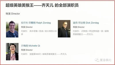 导演有三位,分别是两个外国人——拉尔夫·宗戴格(Ralph Zondag),迪克·宗达格(Dick Zondag),和一位长着东方人面孔但国籍不明的亓(qi)梅晓。