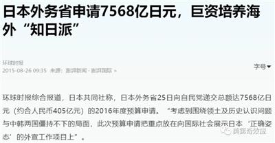 2015年的时候,日本外务省还搞过几千亿日元的专项“外宣基金”。后边干脆停掉了,因为日本人发现,干嘛花那冤枉钱,中国舆论圈有的是“自带干粮”的“志愿者”,把日经、朝日的舆论,全须全尾的搬运到中国去