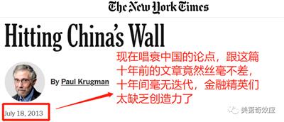 有趣的是,现在唱衰中国的论点和逻辑,跟这两篇已经早已被打肿脸的“预言文章”依然雷同,十年间竟然丝毫没有迭代,国内外金融精英们还真是缺乏创造力。