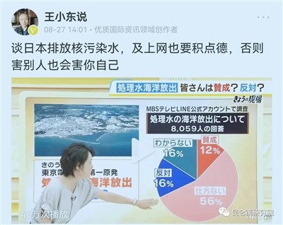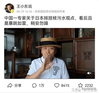 随着日本政府冒天下之大不韪向太平洋排核污水事件的发生,最近王小东又开始了替日本“排核”进行洗白的活动。