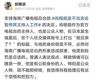 关于海南主持人所说的“报应”一事,有些人认为不应该这样说,如果出于同情,也说得过去。但不要忘了,日本对中国“毒咒”更多,境外平台不断爆出日本诅咒中国地震的事,更为恶毒。