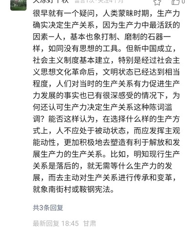 昨天写的文章(原文链接:只有真切地去感受这个落后的生产关系所带来的痛苦,才会有想要改变这个腐朽的生产关系的决心)发出后,收到一位同志的留言:“在新中国建立、社会主义基本制度确立,特别是经过社会主义建设以后,人们早已切身体验到一种新的生产关系能够极大地促进生产力的发展。在这样的背景下,为什么仍然要接受‘生产力决定生产关系’这种老套说法?为什么不可以主动去塑造新的、更有利于发展的生产关系?比如南街村、鞍钢宪法,不正是这样干的吗?”