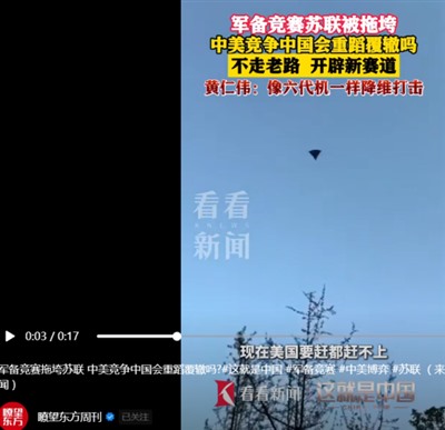 中国发展先进军备,就不是“军备竞赛”吗?用美国霸权的话说,当然是军备竞赛!是与美国进行高强度军备竞赛。按照美国人的逻辑,军备竞赛能够把苏联搞垮,为什么就不能把中国搞垮呢?完全可以的!但是,中国没有垮的迹象,而且还越来越强、越来越稳定,美国却渐渐呈现要垮掉的迹象,越来越明显。这就让军备竞赛导致苏联解体的观点,无法立足!黄仁伟就搞出了个“不走老路,开辟新赛道”“像六代机一样降维打击”论,对“军备竞赛导致苏联解体”论进行了折衷。