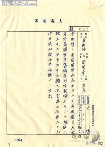 蒋介石和俞国华密电
