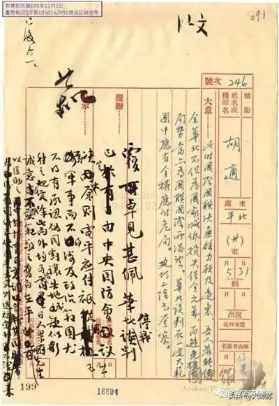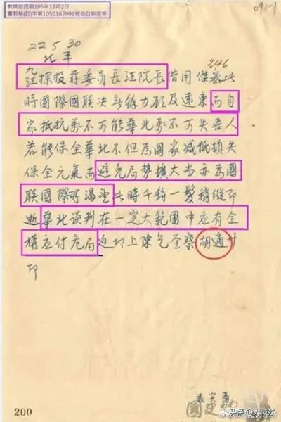 胡适给蒋介石密电