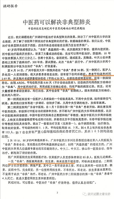 但是对外,钟南山却隐瞒中医药的作用,谎称广州非典死亡率最低,是因为他的抗生素、激素、呼吸机疗法。