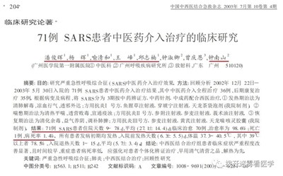 而钟南山治了17例非典死了9例,死亡率高达53%,不得已请呼吸所中医科的5位中医来帮忙。中医介入之后,后续治疗了71例只死亡1例,死亡率1.4%。