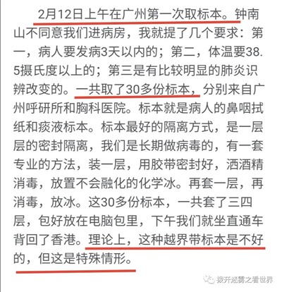 与此相反,香港大学于2月初就从钟南山那里拿到了标本。