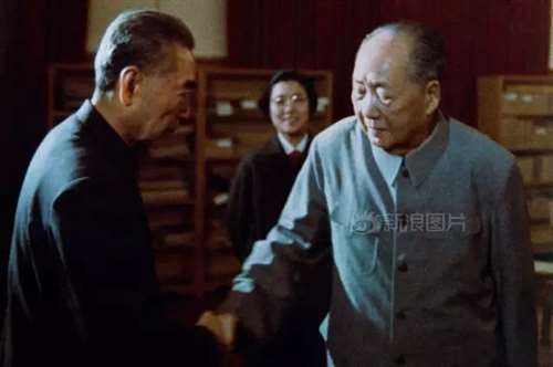 1975年4月18日,毛泽东会见金日成,左一是外交部副部长王海容。邓小平是陪同会见的惟一的中国领导人。在这次会见上,毛泽东跟金日成说自己身体不行了,“上帝请我喝烧酒”,并说“我不谈政治,由他来跟你谈了。此人叫邓小平。”