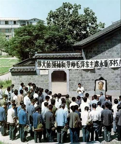 长沙附近群众悼念队伍到清水塘悼念毛泽东逝世。