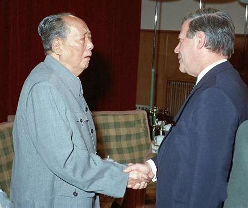 1975年10月21日晚上,毛泽东会见美国国务卿兼总统国家安全事务助理亨利·基辛格博士。此时,毛泽东的身体状况极为衰弱,连站立说话都十分困难,他坦率地对基辛格说:“你知道我浑身都是病。我很快就会去见马克思了。”
