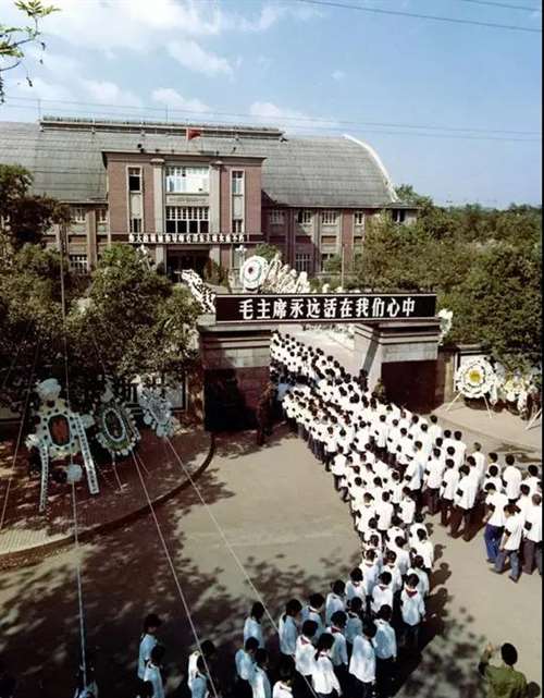 1976年9月,长沙市各中、小学师生到悼唁厅悼念毛泽东。