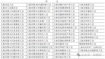 至此,三友实业社一厂的劳资纠纷,遽变为上海劳资两大阵营的正面冲突。其时劳资两大阵营剑拔弩张,双方交战之激烈,实属前所未见,以至当时社会舆论认为资本大联合与劳工大联合的直接交锋将从此开始22。从后来的事实看,此次劳资两大阵营的对垒,是30年代中国工人阶级与资本家阶级之间规模最大也是最为激烈的一次言论交锋。资方参与交锋的厂商团体多达90余个,而劳方参与交锋的工会亦多达60多个(参见下页表)。据1932、1933年国民党中央民运会之调查,当时上海有各类工会67个,工商同业公会272个(内中组织健全者141个)23。双方均明确宣示各自的阶级立场,为各自的阶级利益宣战,在战前劳资纠纷史上具有特殊的意义。