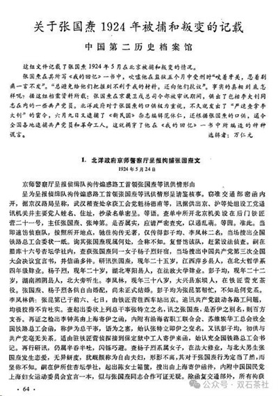 [9]《关于张国焘1924年被捕和叛变的记载》(中国第二历史档案馆),《历史档案》1980年第2期第64~第69页。