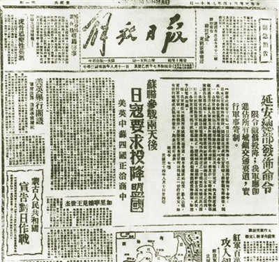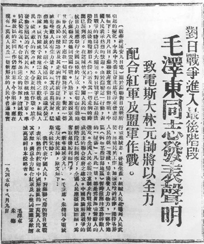 同日,《解放日报》发表毛泽东为新华社写的评国民党中宣部发言人谈话和蒋介石命令的评论《蒋介石在挑动内战》。评论指出:国民党中央宣传部发言人发表谈话说,朱德总司令所发表的限令敌伪投降的命令,是一种“唐突和非法之行动”。“这种评论,荒谬绝伦。”“根据这种意见,可以逻辑地解释为朱德总司令根据波茨坦公告和敌人投降的意向,下令给所属部队促使敌伪投降,倒反错了,应该劝使敌伪拒绝投降,才是对的,才算合法。……这样的敌我倒置,真是由蒋介石自己招供,活画出他一贯勾结敌伪、消除异己的全部心理了。”评论一针见血地指出:“国民党中央宣传部发言人的评论和蒋介石的‘命令’,从头到尾都是在挑拨内战,其目的是在当着国内外集中注意力于日本无条件投降之际,找一个借口,好在抗战结束时,马上转入内战。”评论最后严正声明:“我们要向全国同胞和全世界人民宣布:重庆统帅部,不能代表中国人民和中国真正抗日的军队;中国人民要求,中国解放区抗日军队有在朱德总司令指挥之下,直接派遣他的代表参加四大盟国接受日本投降和军事管制日本的权利,并且有参加将来和会的权利。要不是这样做,中国人民将认为是很不恰当的。”(《毛泽东选集》第四卷,第1137-1139页)