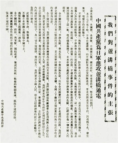 1937年7月8日,中共中央向全国发出《中国共产党为日军进攻卢沟桥通电》,号召全国同胞奋起抗战。