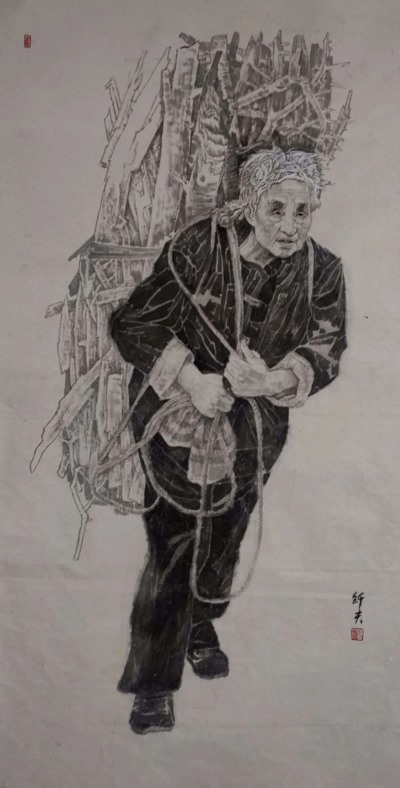 背柴的独居老妇