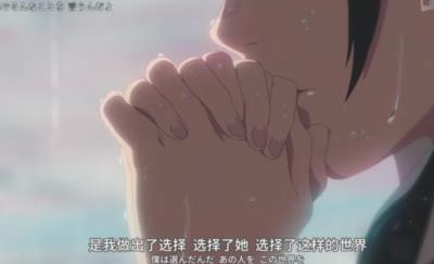 电影中帆高看到东京逐渐被淹没,还对自己的做法充满疑惑。直到片尾他看到已经一度差点丢失姓名,已经失去祈晴的力量的阳菜,仍然在不顾自身安危为人们祈晴时,他才变得毫不犹豫。