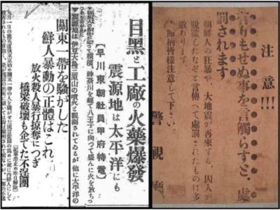 而这时另一则谣言被人蓄意传播,说社会主义分子和朝鲜人利用灾难,对日本民众进行烧杀抢掠。日本的民族主义分子成立了“自警团”,对东京的朝鲜人展开了大屠杀: