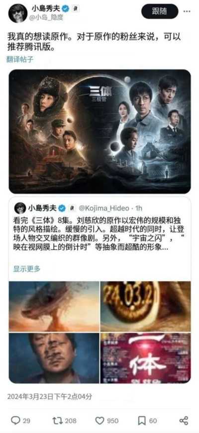 也就某些殖人会尬吹网飞的“三体”,实际上这片烂的全世界都看不下去,你看看小岛秀夫说什么?建议你去看原著和腾讯版《三体》。某些人脸被打肿了,甚至开始贬低刘慈欣原著不行……