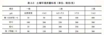 未经处理的各种污水直接进入江、河、湖泊和农田,是导致农田重金属污染最主要的来源,污水中的重金属元素不仅污染了农田土壤,还进一步污染了地下水。检测数据显示,目前大部分地下水遭到了污染,有 90%的城市地下水被污染,其中2/3被严重污染,而全国有40%的农业灌溉使用地下水,进入地下水的重金属又随灌溉进入农田土壤。土壤中的重金属随着作物的吸收、转运而进入人类食物链,引发各种食品安全事故,不断出现的“癌症村”就是其危害的具体表现重金属源头切断,一是化肥;二是污染的工厂化养殖动物粪便如鸡粪、鸭粪、鹅粪、猪粪等;三是农药中的重金属。从源头切断重金属进入土壤至关重要。本团队在化肥-有机肥配施试验中测定了不同施肥处理 0~20 厘米土层土壤中的重金属含量,这对于了解土壤重金属含量和土壤质量具有非常现实的意义, 它可以反映重金属在土壤中 0~20 厘米耕层的含量及不同施肥处理对土壤受重金属污染影响的情况。4 个处理为:①有机肥(M);②75%有机肥+25%化肥 (MNPK1);③50%有机肥+50%化肥(MNPK2);④全化肥(NPK)。测定的重金属包括铜、锌、铅、铬 4 种重金属。试验土壤为 0~20 厘米耕层,土壤 pH<6.5, 因此,本研究中各项重金属元素分别执行国家标准中相应的二级标准中的pH<6.5 的标准值(表 2-3)
