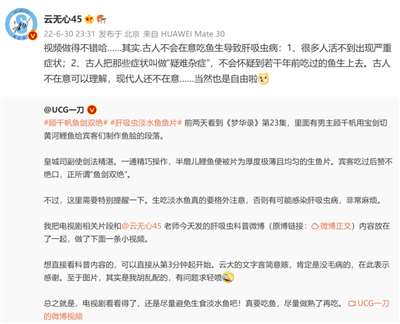 然后有网友借此做科普,提醒大家生吃淡水鱼一定要特别注意,能不吃尽量不吃,否则极有可能感染肝吸虫病。