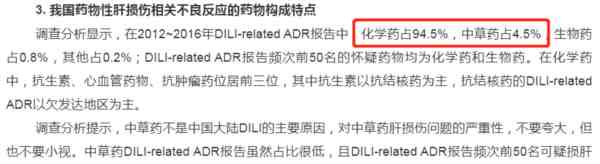 最新研究表明,化学药(占比94.5%)是我国大陆药物性肝损伤的最主要的原因,中草药只占4.5%。