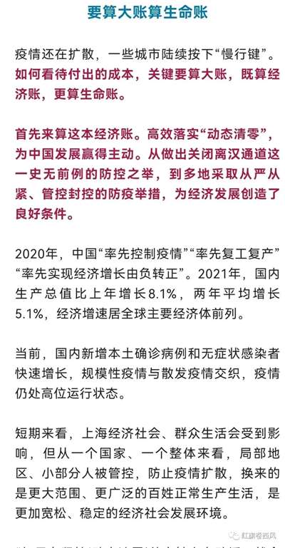 中国国情与西方大不一样。人口基数,人口年龄结构以及社会经济发展等各方都与西方国家不同。一旦“躺平”抗疫,恐怕中国医疗体系很快就被击穿,甚至引发社会动荡,而最终的结果就是谁都无法幸免。正如新华网发文论证的一样:
