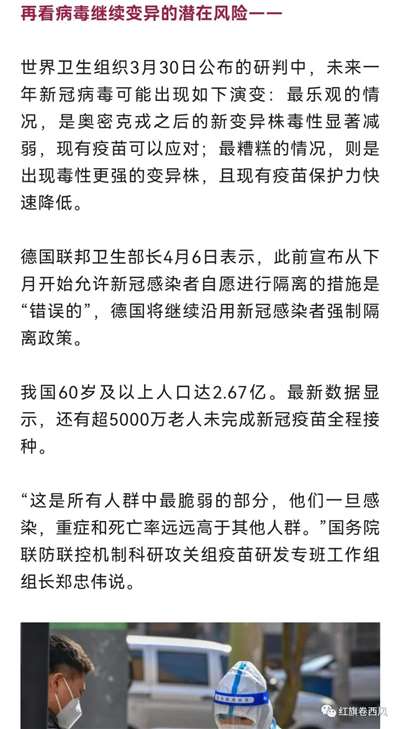 新冠疫情全球爆发伊始,各个国家还在努力防控。随着时间推移,病毒变异,民众疲乏,经济下行,舆论、贸易战争等综合因素影响,西方国家防疫集体“躺平”,大力宣扬“共存论”。只有我国坚持“动态清零”总体防疫战略不动摇。但是就在中央和国家三令五申强调之下,社会上依旧有一些人的一些言论在宣扬中国防疫要学西方的“躺平”式防疫。而在这种思想和言论的影响下,甚至一些干部在防疫上也开始松动,走岔路。而最终导致的后果就是更严重的疫情爆发后果。