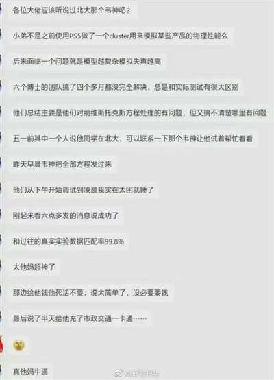 团队本想用钱感谢韦神,结果韦东奕表示太简单了,死活不要。