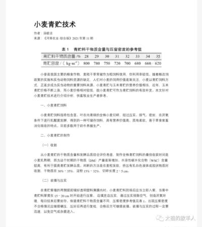 去年有篇论文对小麦青贮技术做了总结性介绍: