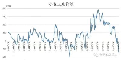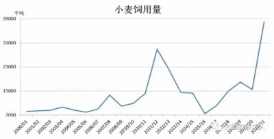 下面这三张图分别是2000-2020年20年间小麦饲用量、小麦和玉米价格、小麦玉米价差的波动情况: