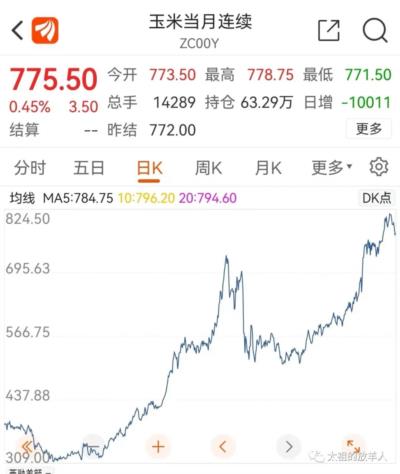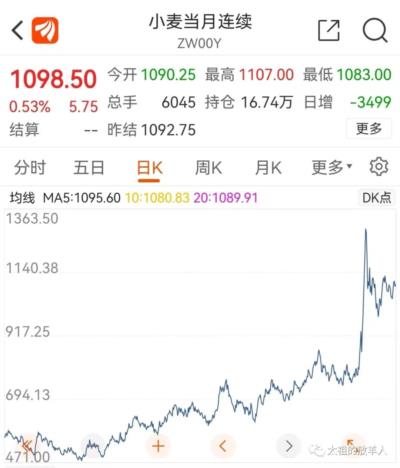 小麦冲高回落,而玉米价格都快涨到天上去了。市场对二者的价格预期很明显了。